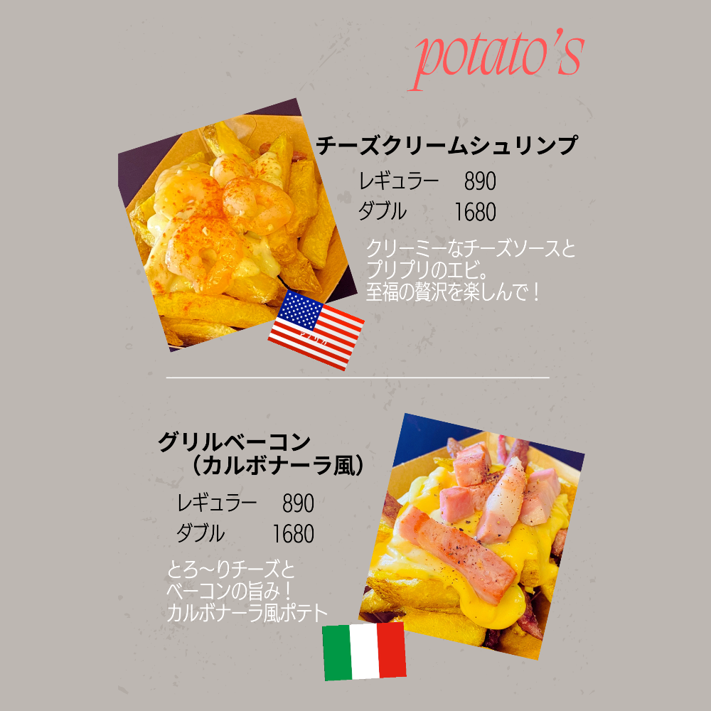 スナックと思われがちなフライドポテトも所変われば品変わるで、カナダのプーティンやドイツのポメスに代表され主食級に大変身😋美味しいじゃがいも料理を召し上がれ‼️